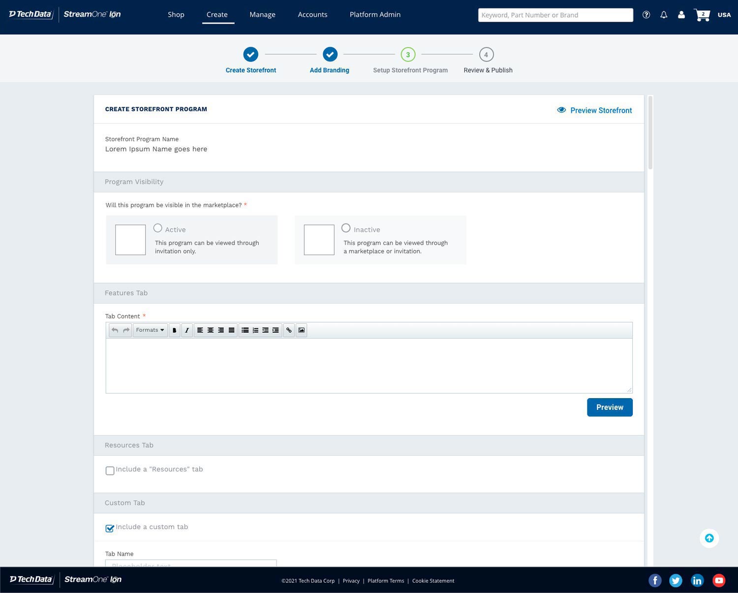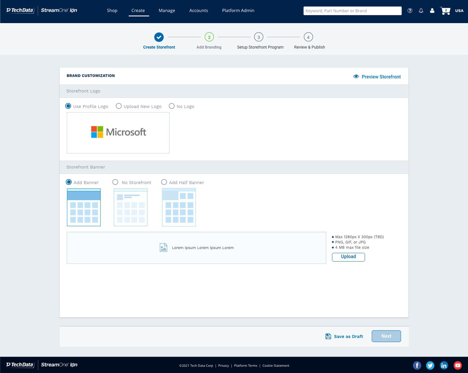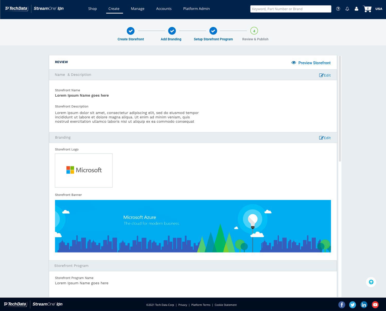 In a lightning bolt of inspiration, we realized the key to revolutionizing the e-commerce landscape lay in creating a hyper-intuitive storefront builder. This application would not just democratize e-commerce; it would catapult Tech Data's clients into the digital fast lane. We envisioned a seamless, interface that would enable users to craft stunning, conversion-optimized storefronts in mere minutes. The application would be a powerhouse of customization, allowing clients to infuse their unique brand DNA into every pixel, while maintaining a sleek, professional aesthetic. With mobile-first responsive design baked into its core, this tool would ensure Tech Data's clients could captivate customers across all devices. This approach would not only slash time-to-market it would also empower businesses of all sizes to compete head-to-head with industry giants.